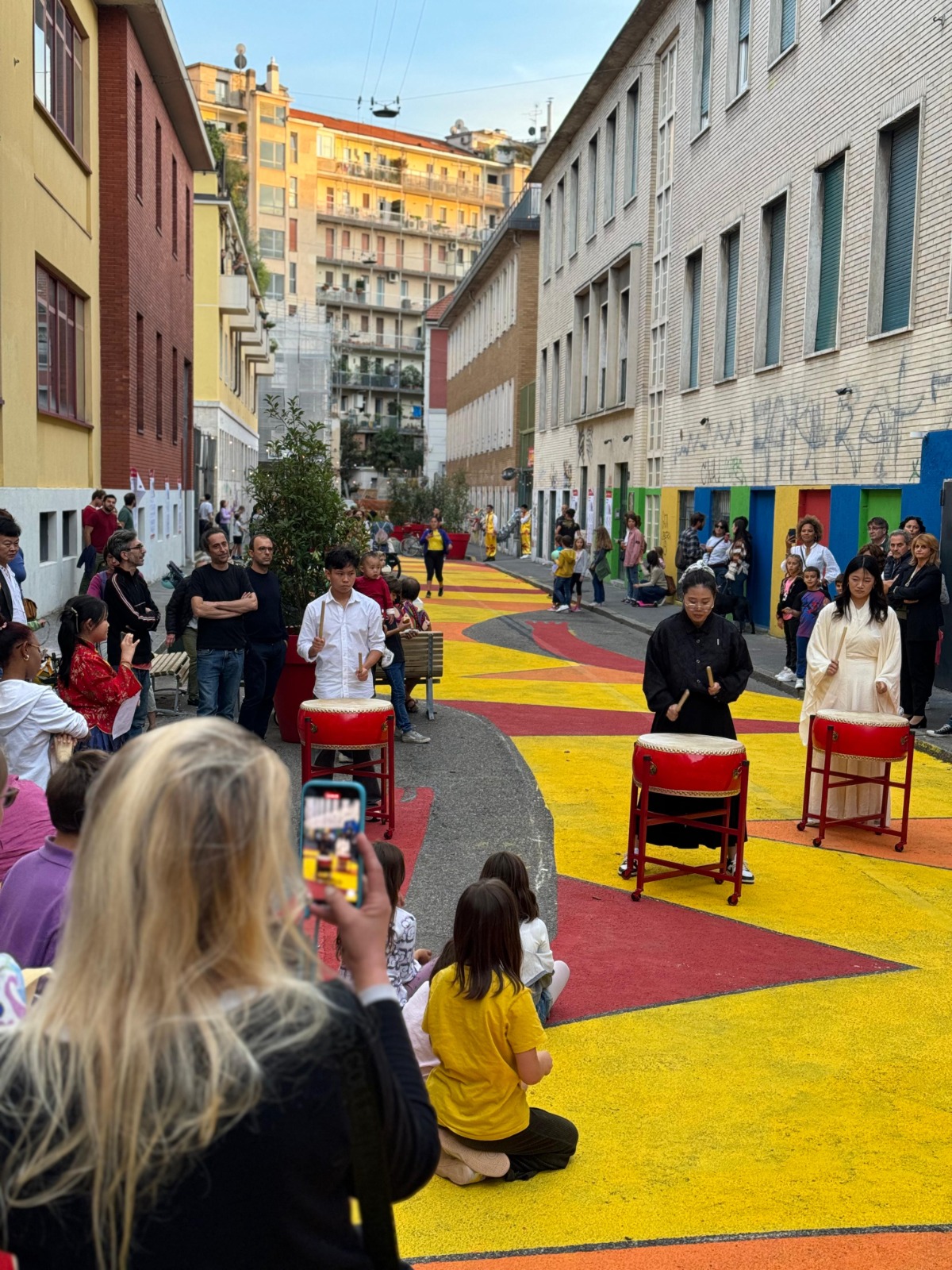 Grazie alla posa degli arredi e alla colorazione del manto stradale si è riusciti a creare uno spazio di socialità godibile che ha messo in sicurezza l'ingresso e l'uscita dei tantissimi ragazzi e ragazze che frenquentano le scuole prospicienti la via e non solo.